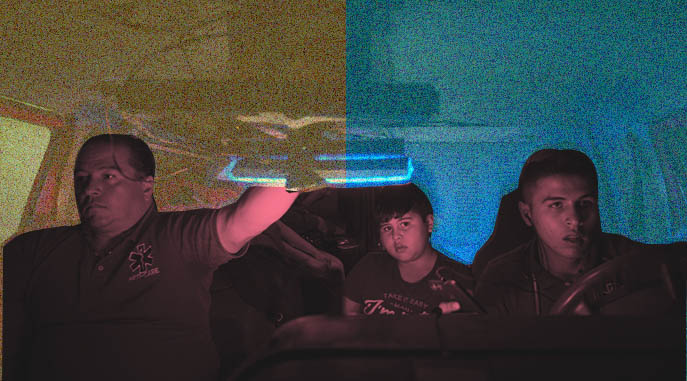 La noche típica de los Ochoa inicia con las horas de espera, monitoreando la radio de la policía. Cuando las claves indican un accidente cercano, se prende la torreta, el acelerador se pisa a fondo, se abren paso a gritos mediante el altavoz y una vez en el lugar, los Ochoa dan muestra de un profesionalismo conmoverdor: atendiendo con toda propiedad a los heridos, calmándolos, reconfortándolos, y llevándalos al hospital más cercano.