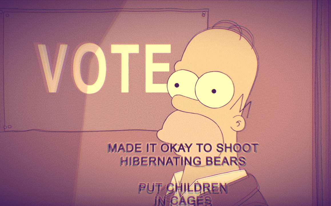 En el más reciente episodio de La Casita del Horror XXXII de los Simpson, Homero acude a votar pero no sabe por quién. Lisa entra a la casilla de votación (con estricto cubrebocas) y le reclama a su padre: “Por todo lo que es decente ¿cómo es posible que hayas olvidado todo lo que ha pasado en los últimos cuatro años?”